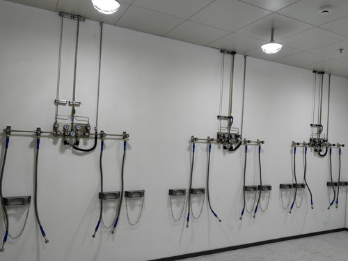 1.氣瓶間內重壓調控面版與試驗室內吊頂的氣路終端設備左右挑選SS316LBA管確定接入,線路內接觸面光滑度為Ra<0.4umBA級線路。